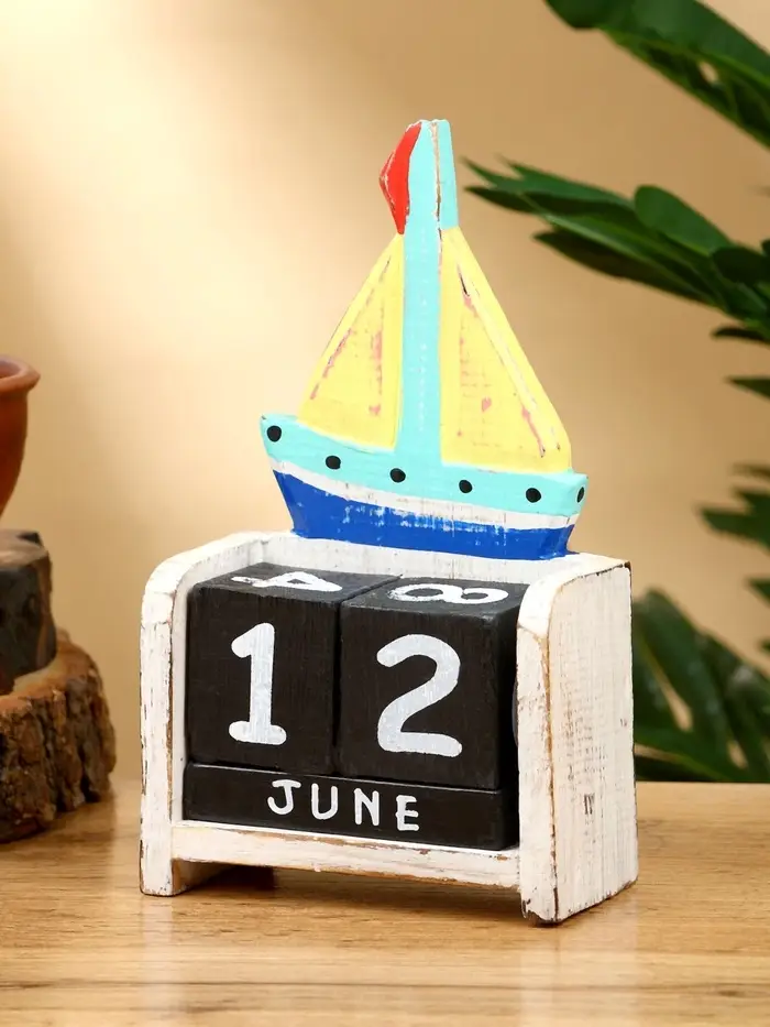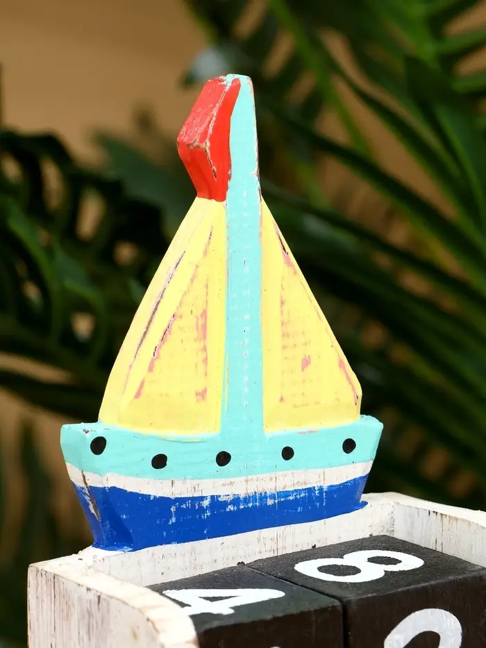 Календарь настольный "Парусник" дерево 11х5х16 см, цв. жёлтый
