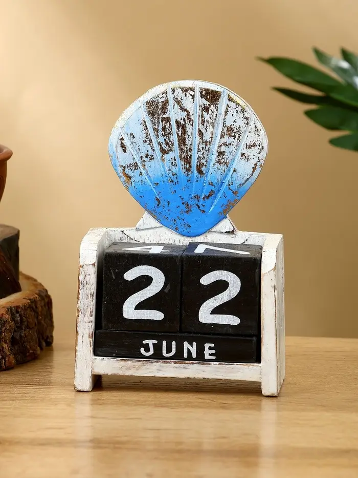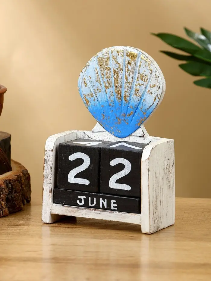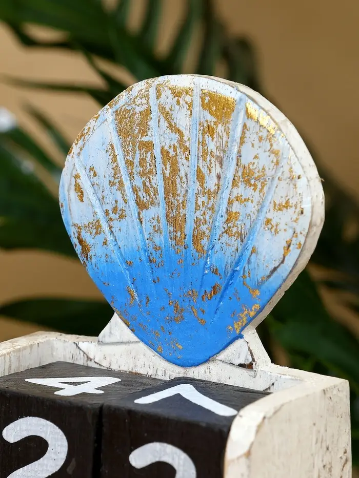 Календарь настольный "Морская ракушка" дерево 11х5х14 см, цв. бело-золотой