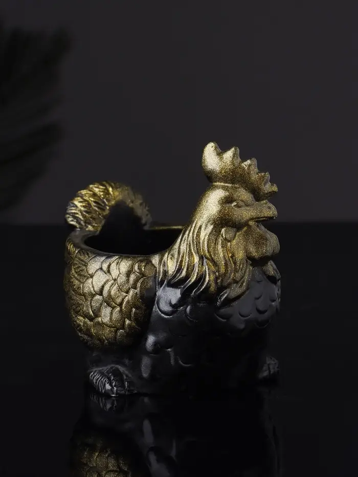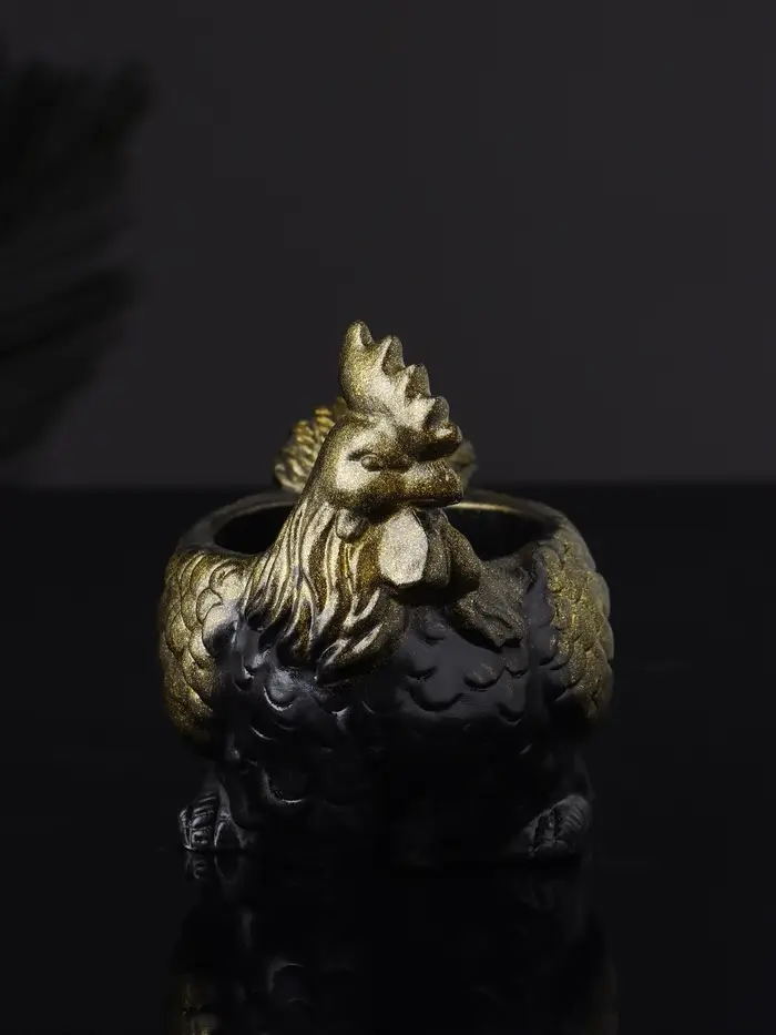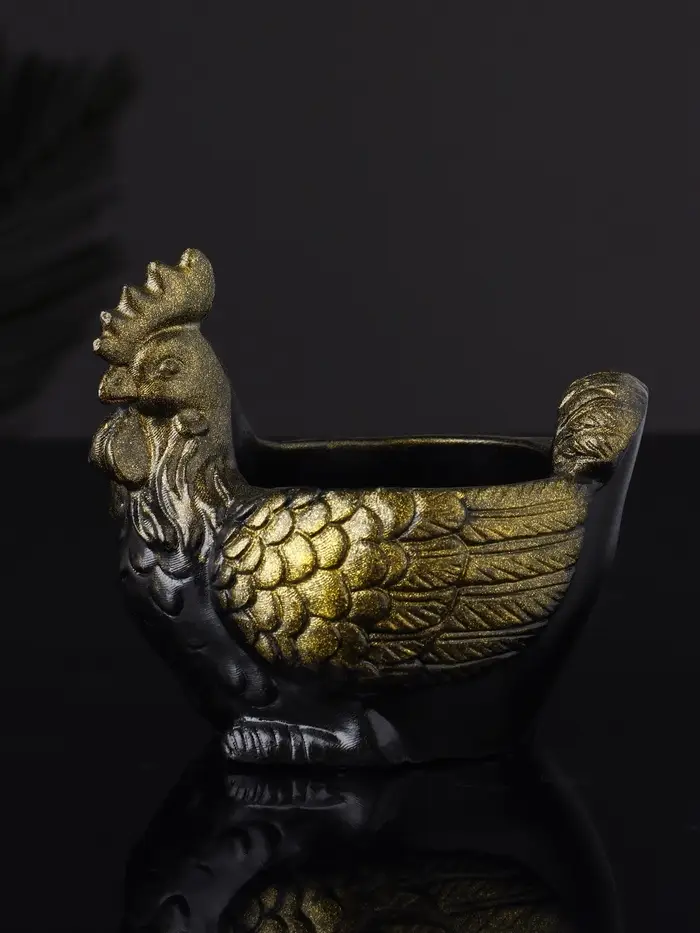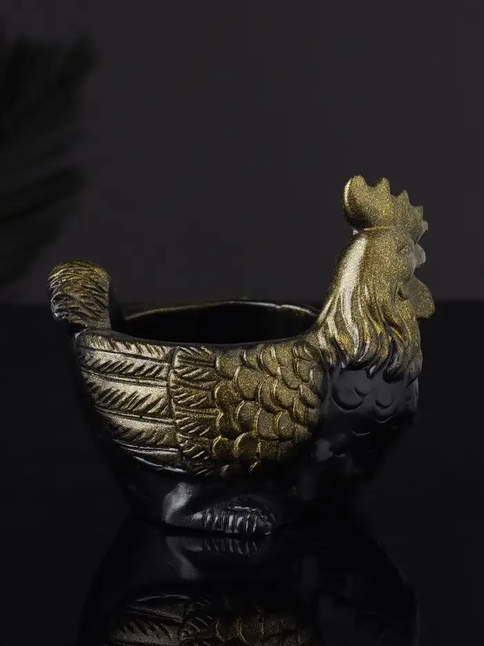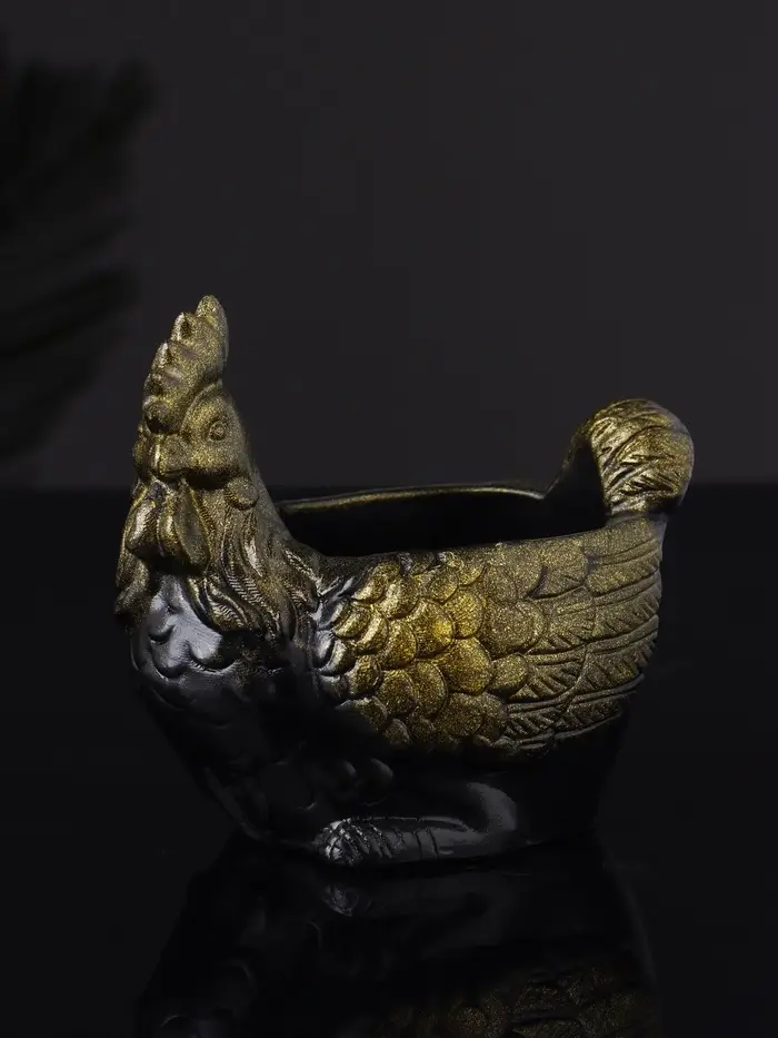 Кашпо "Курица" 10х9х6 см, черный с позолотой