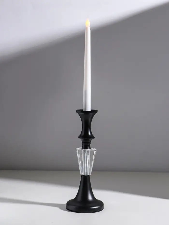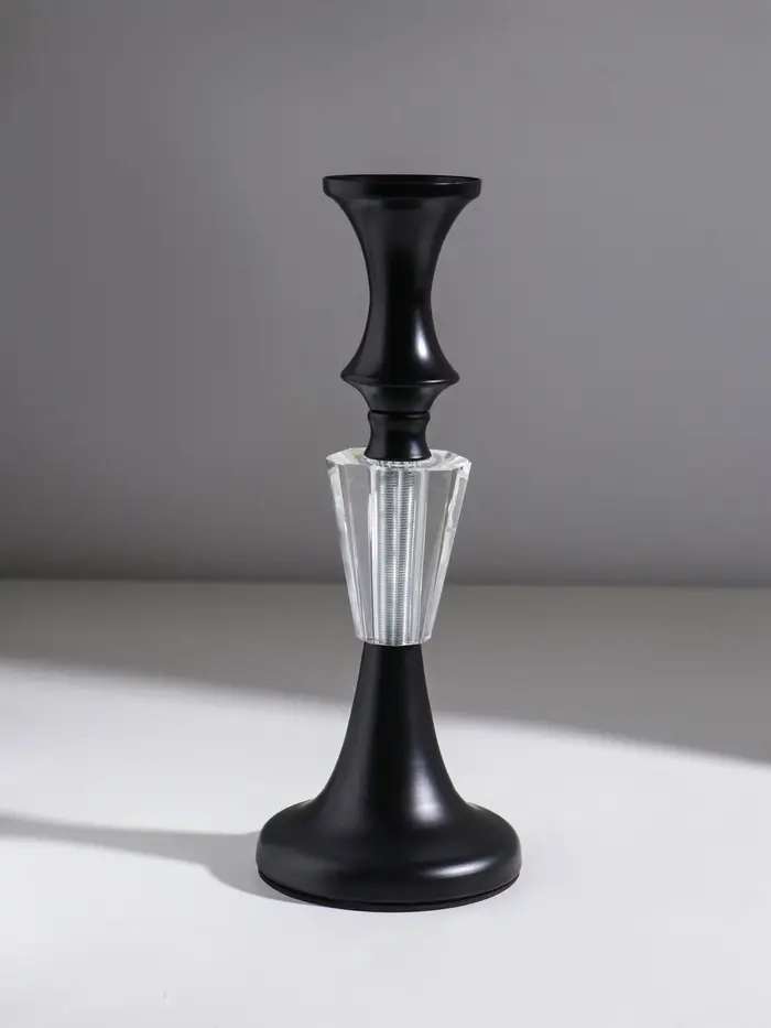 Подсвечник стекло, металл на 1 свечу "Кристалл. Классика" чёрный d=5 см 9,5х9,5х24 см
