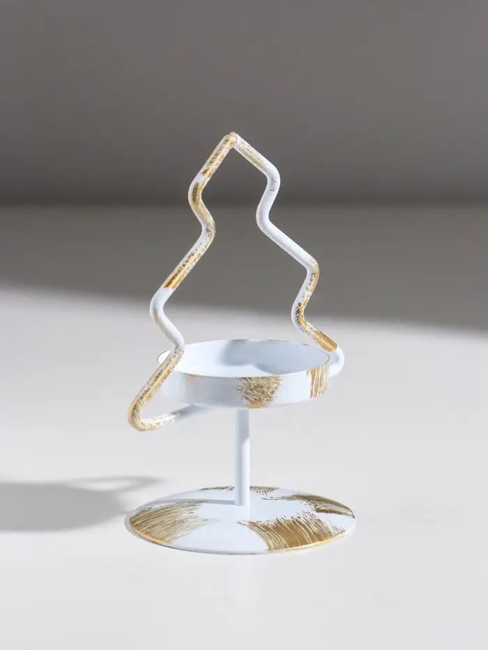 Подсвечник металл на 1 свечу "Ёлочка" белый с патиной d=5 см 7х7х12,5 см