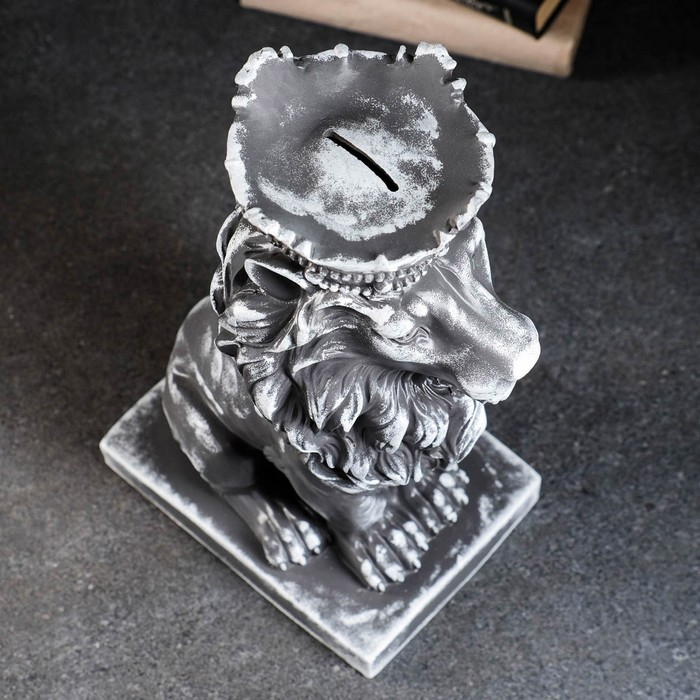 Копилка "Лев с короной" серый камень, 19х14х35см