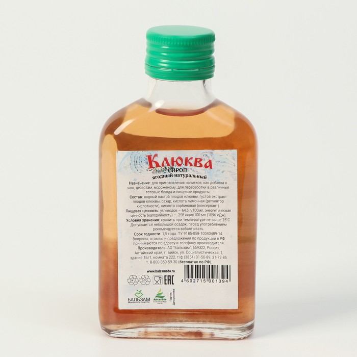 Ягодные сиропы Зимние ягоды это натуральные продукты для здоровья из спелых дикорастущих ягод, собранных в экологически чистых районах Алтая. Натуральные ягодные сиропы это оригинальный неповторимый вкус и аромат в сочетании с уникальными лечебными свойствами, без красителей и ароматизаторов. Благодаря высокому содержанию ценных природных веществ, витаминов и микроэлементов, ягодные сиропы оказывают выраженное оздоравливающее действие на организм человека: укрепляют иммунитет, витаминизируют, повышают работоспособность, заряжают энергией и силой. Используйте натуральные ягодные сиропы, для приготовления морсов, коктейлей, как добавку в чай, кофе и другие напитки, а также к десертам, йогуртам, мороженому, кондитерским изделиям.
