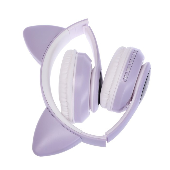 Наушники-Кошки MYBIT W-32, беспроводные, MIC, BT 5.0, AUX, microSD, MP3, 400 мАч, фиолетовые