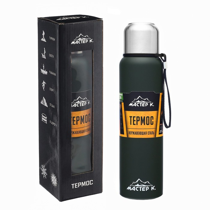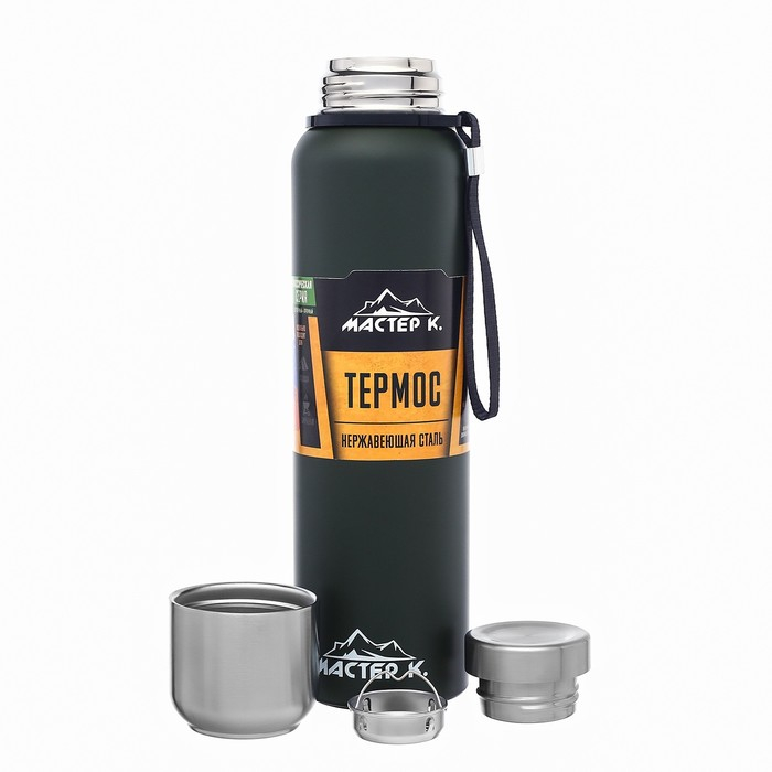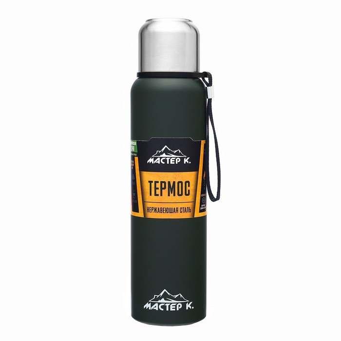 Термос, 1 л, Путешествие "Мастер К.", с кружкой, с ситечком, сохраняет тепло 24 ч
