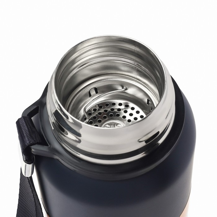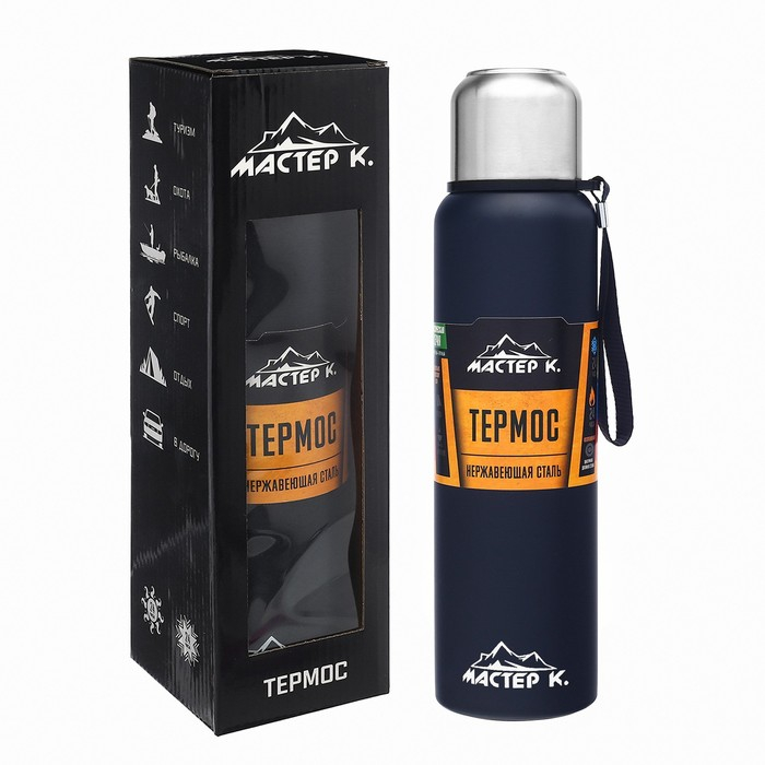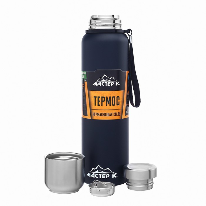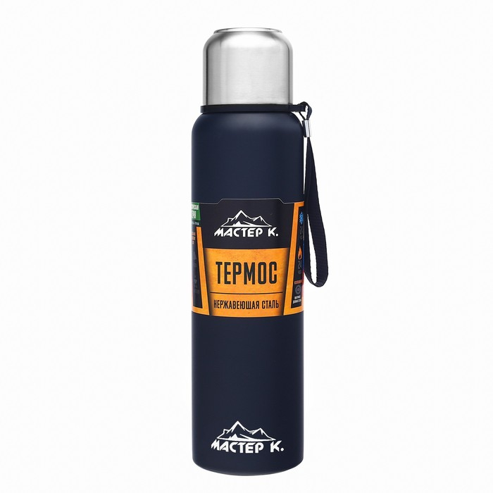 Термос, 1 л, Путешествие "Мастер К.", с кружкой, сохраняет тепло 24 ч, с ситом