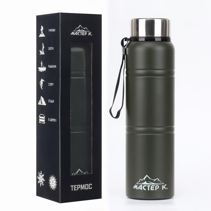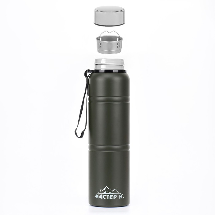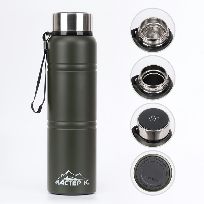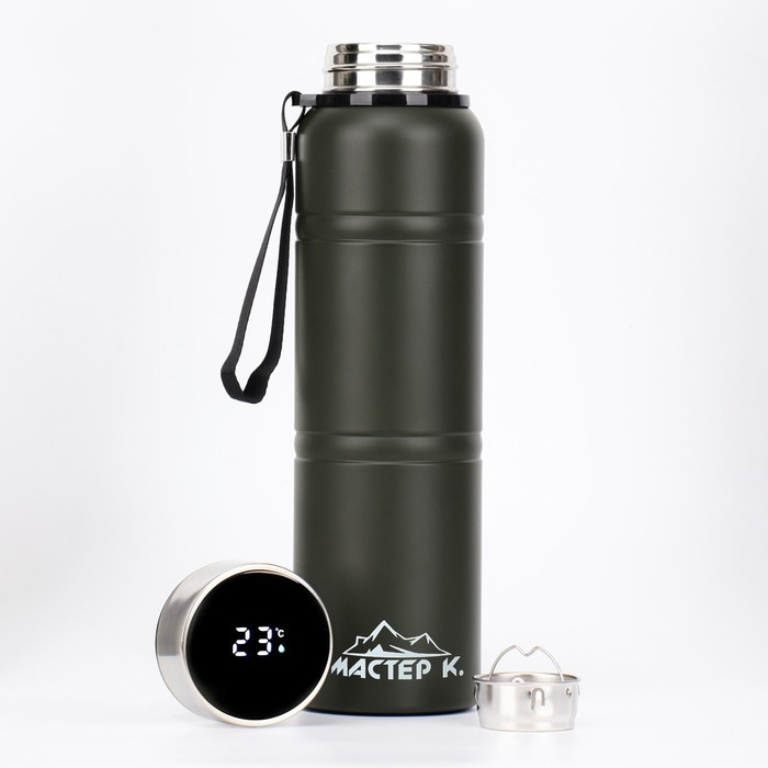Термос, 1 л, Warm, сохраняет тепло 24 ч, с ситечком, с датчиком температуры, зеленый