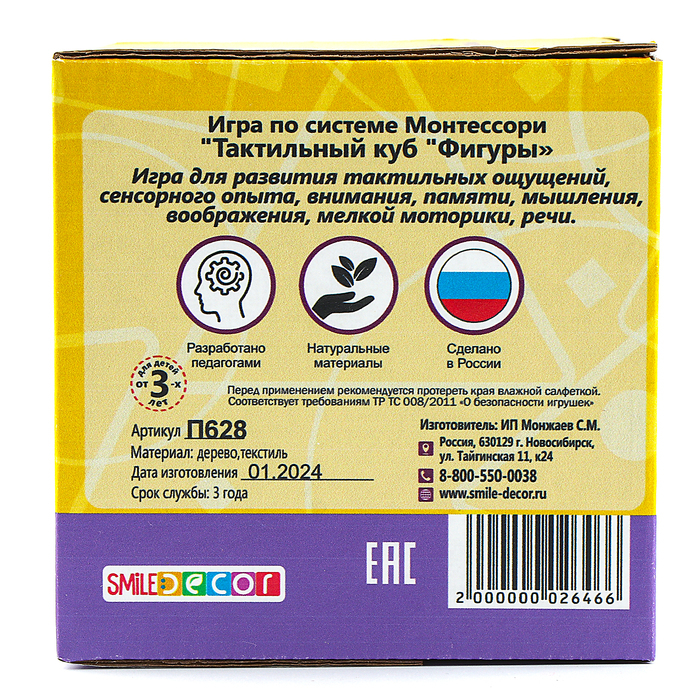 Тактильный куб «Фигуры» — это залог гармоничного развития и источник радости и веселья для вашего ребёнка.
