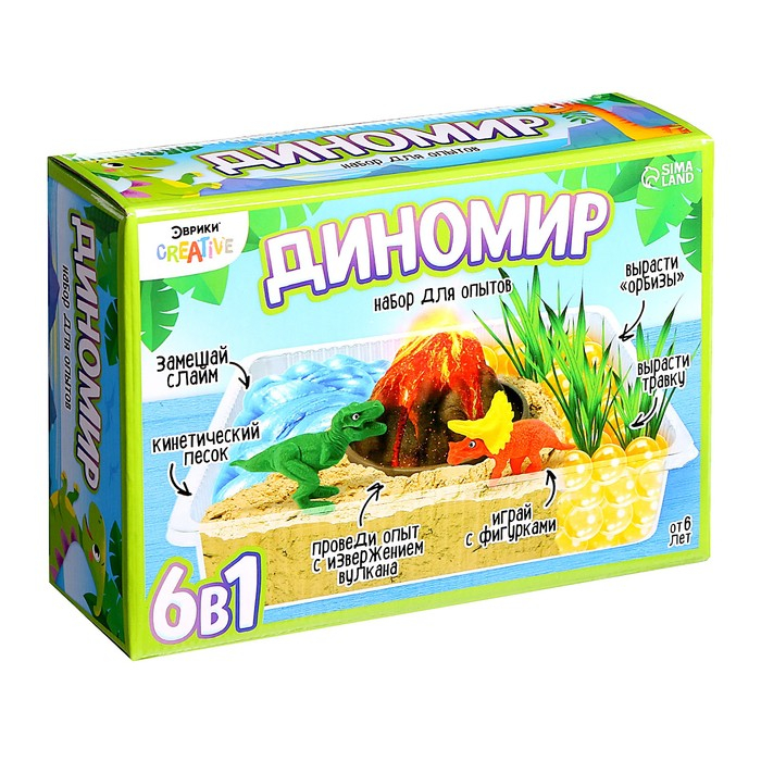 Набор для опытов «Диномир» это 6 разнообразных мини-опытов в одном комплекте. Ребёнок создаст свой уникальный мир динозавров и населит его доисторическими рептилиями.