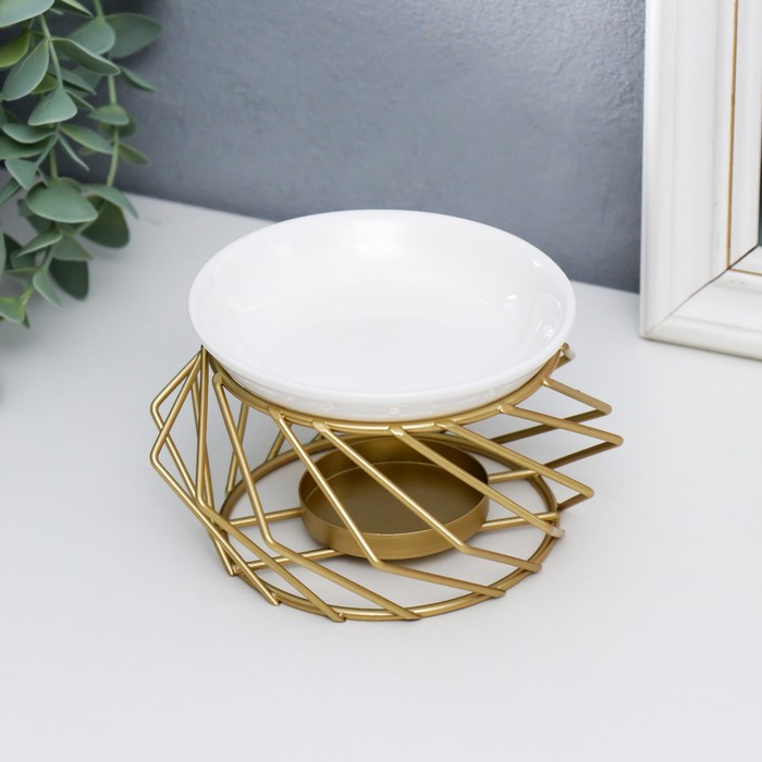 Аромалампа металл, керамика "Геометрия плетение" золото 7,5х13х13 см