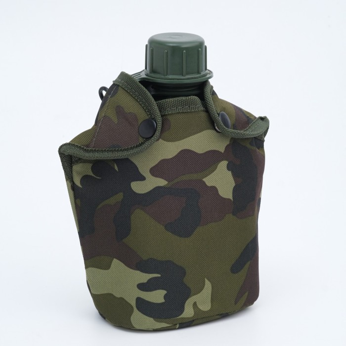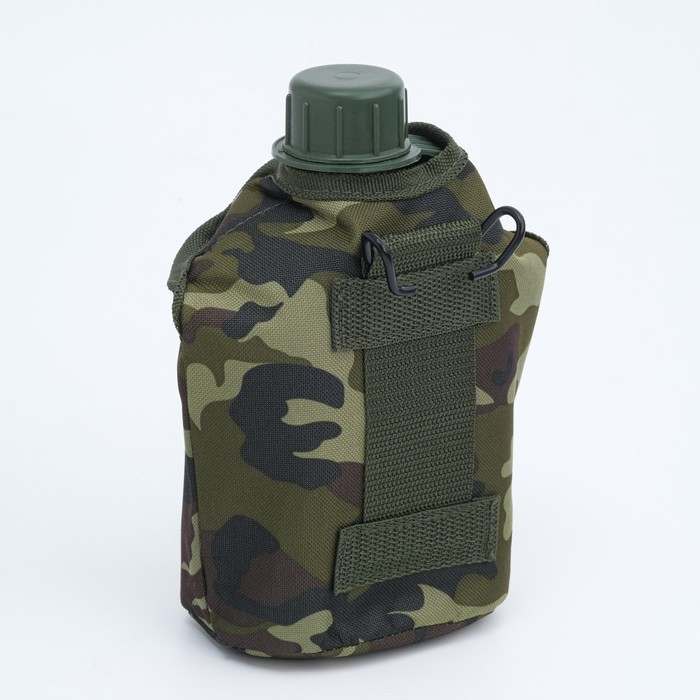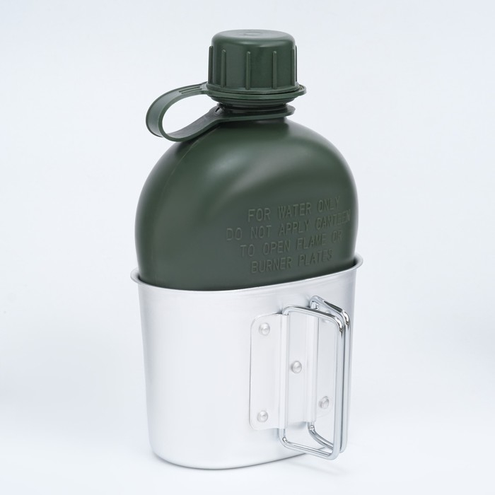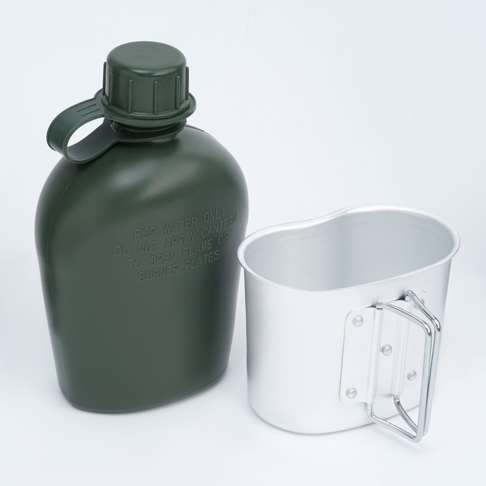 Фляжка армейская походная "Аdventure" 1 л для воды, с котелком, металл, зелёная, цифра