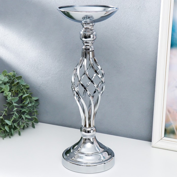 Подсвечник металл на 1 свечу "Сплетение" серебро 40х14х15 см