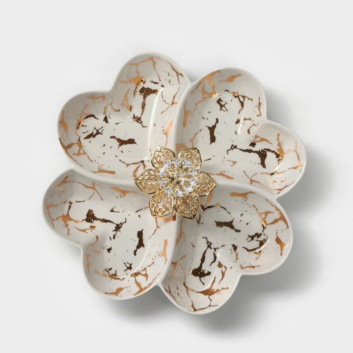 Менажница керамическая 3 ячейки «Марбл», 160 мл, 25,3×23×4,5 см, цвет белый