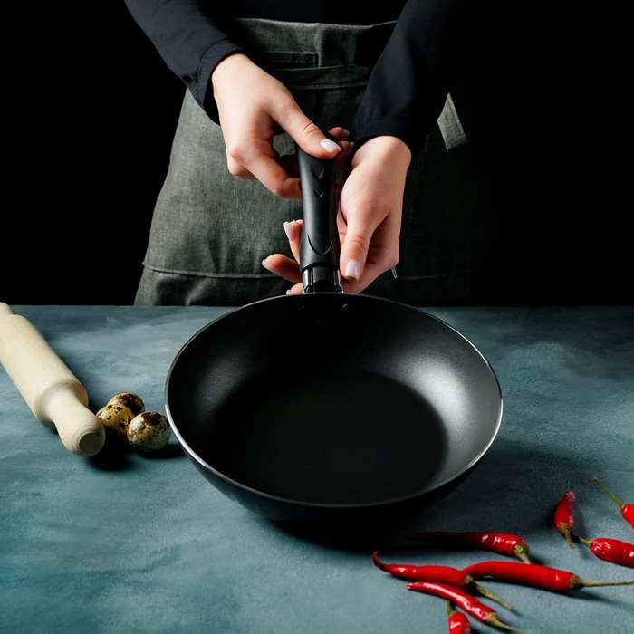 Качество и функциональность за небольшую стоимость – это всё о продукции Доляна Promo. Сковороды выполнены из прочного штампованного алюминия толщиной 1,9 мм