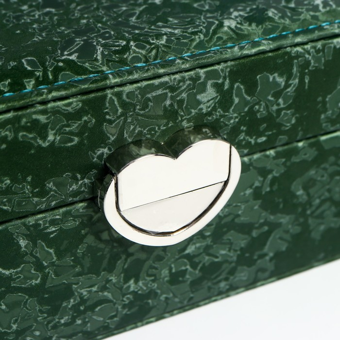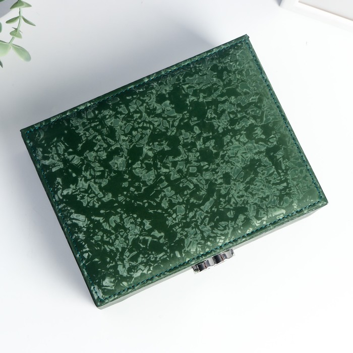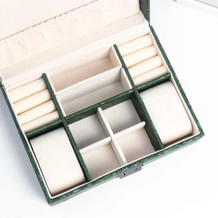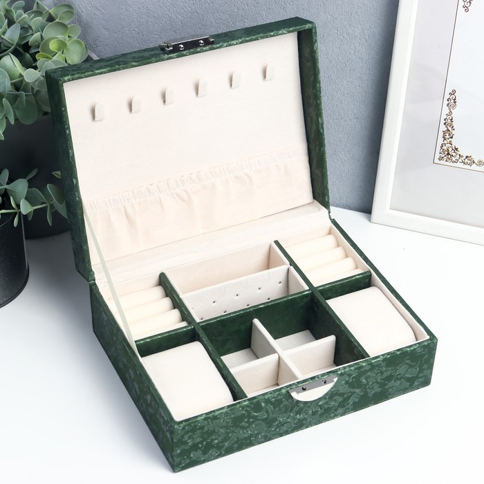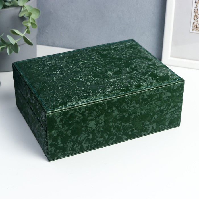 Шкатулка кожзам под часы 2 отделения и бижутерию "Под бархат" тёмно-зелёная 8х15,5х20,5 см