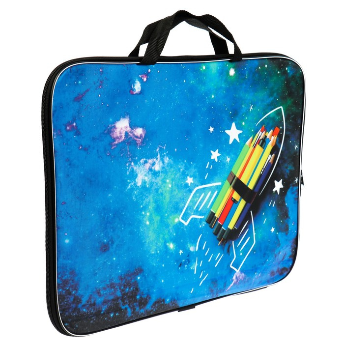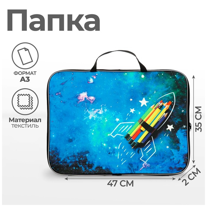 Папка для чертежей и рисунков А3, 470 х 350 х 20 мм, с ручками, текстильная, Calligrata "Ракета"