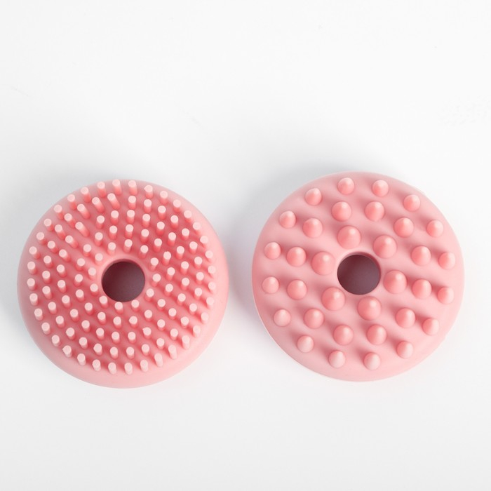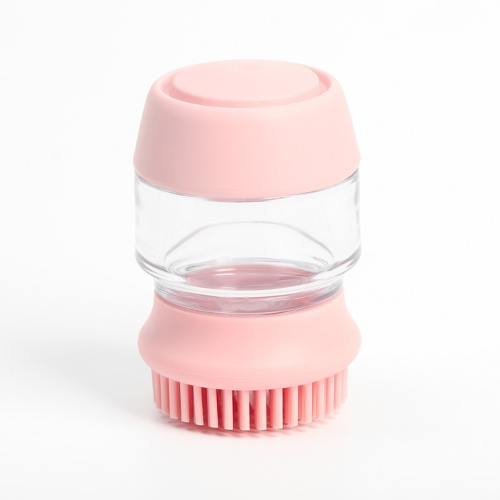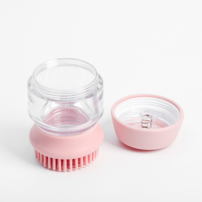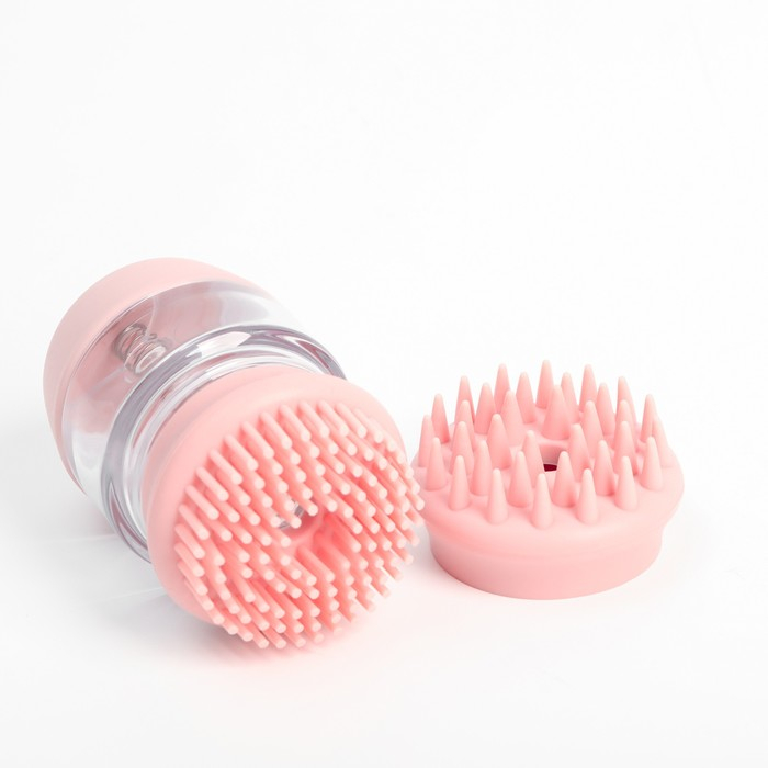 Щётка для мытья и массажа собак с ёмкостью для шампуня и 2 насадками, 5.8х5.8х9 см, розовая 711233