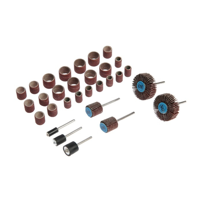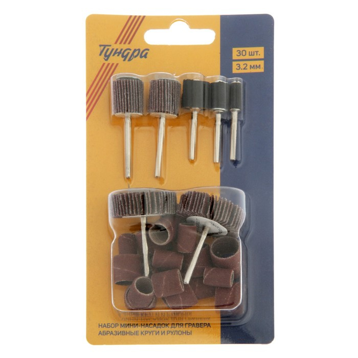 Набор мини-насадок для гравера ТУНДРА, абразивные круги и рулоны, 3.2 мм, 30 шт.