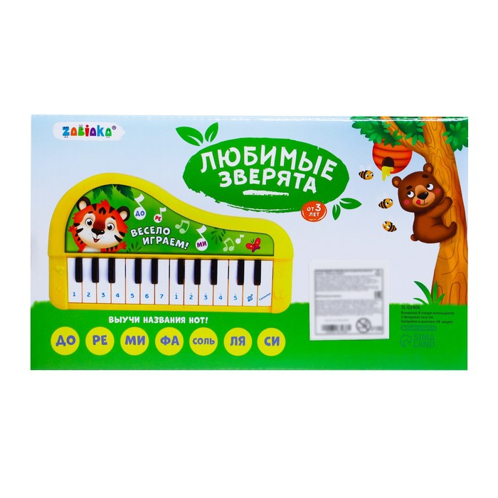 Музыкальное пианино «Любимые зверята», звук, цвет жёлтый