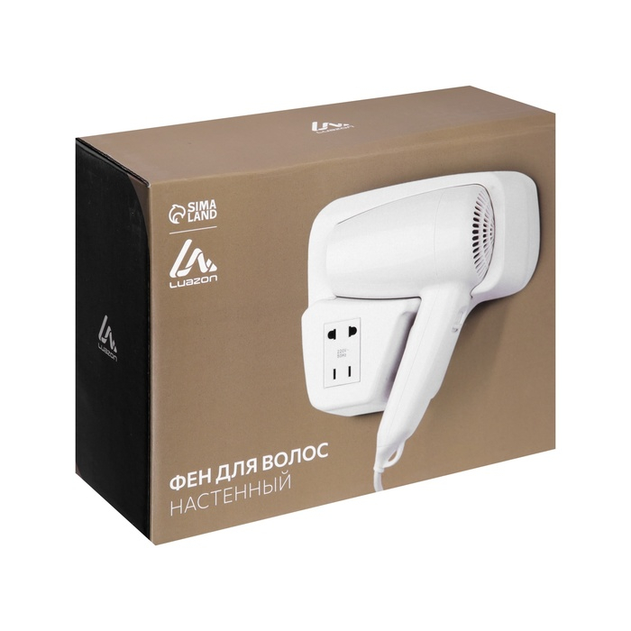 Фен настенный Luazon LGE-007, 1600 Вт, 2 скорости, крепление (в комплекте), белый
