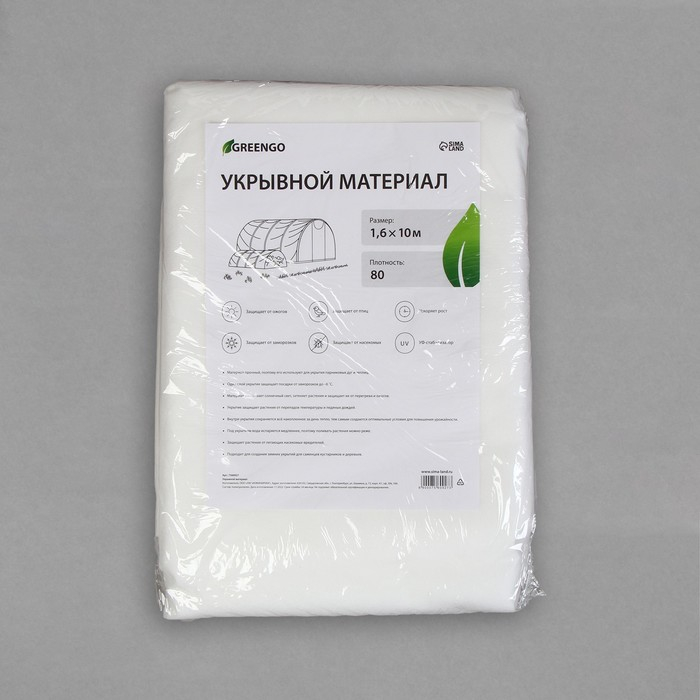 Материал укрывной, 10 × 1,6 м, плотность 80 г/м², спанбонд с УФ-стабилизатором, белый, Greengo, Эконом 30%