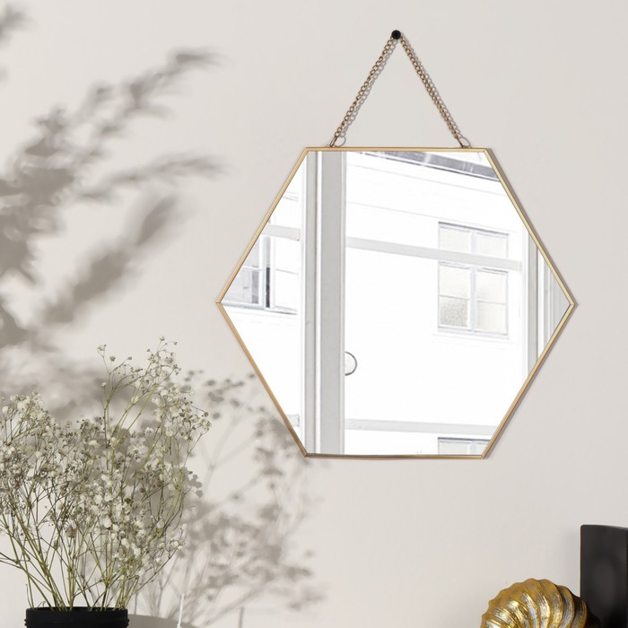 Зеркало настенное «Изящная геометрия», зеркальная поверхность 25 × 28 см, цвет золотистый