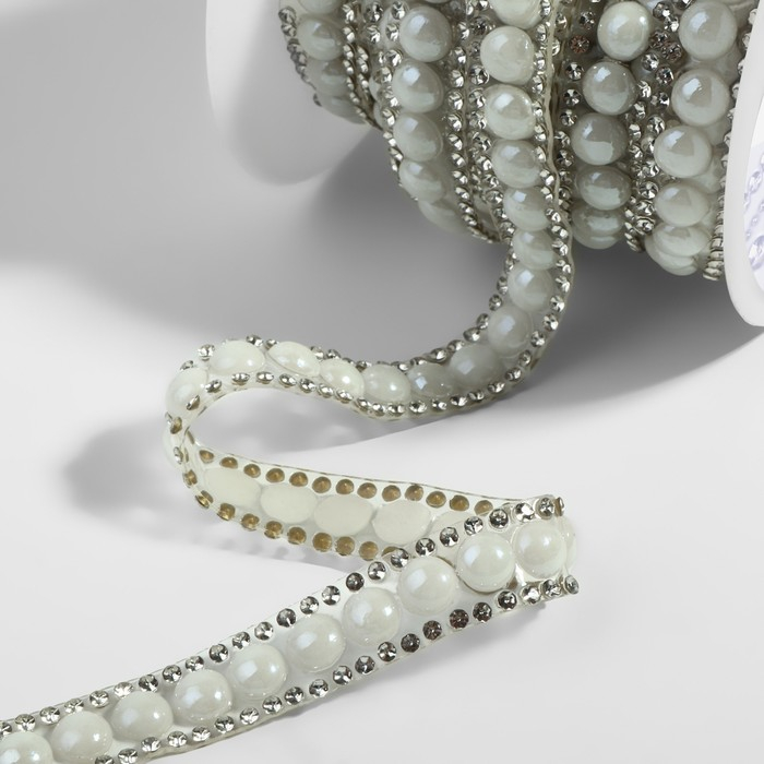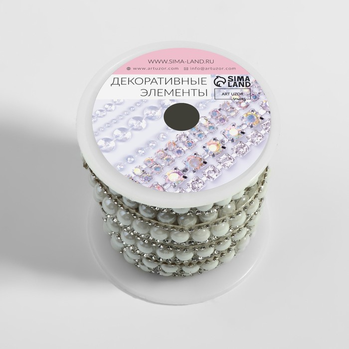 Стразы и цепочка термоклеевые, ширина - 9 мм, 4,5 ± 0,5 м, цвет серебряный