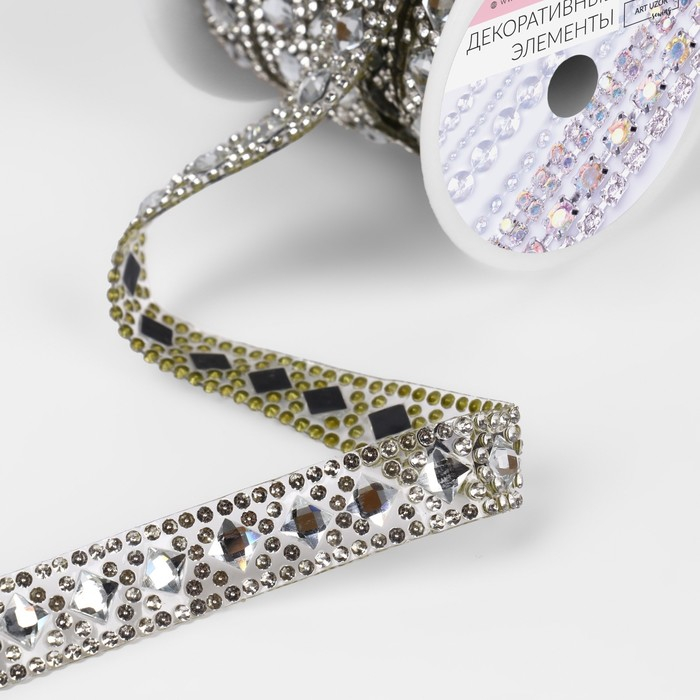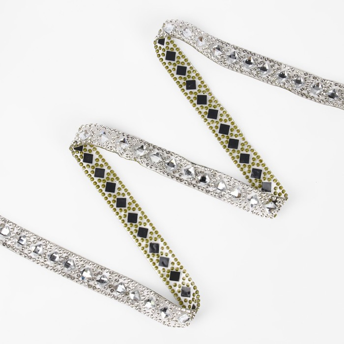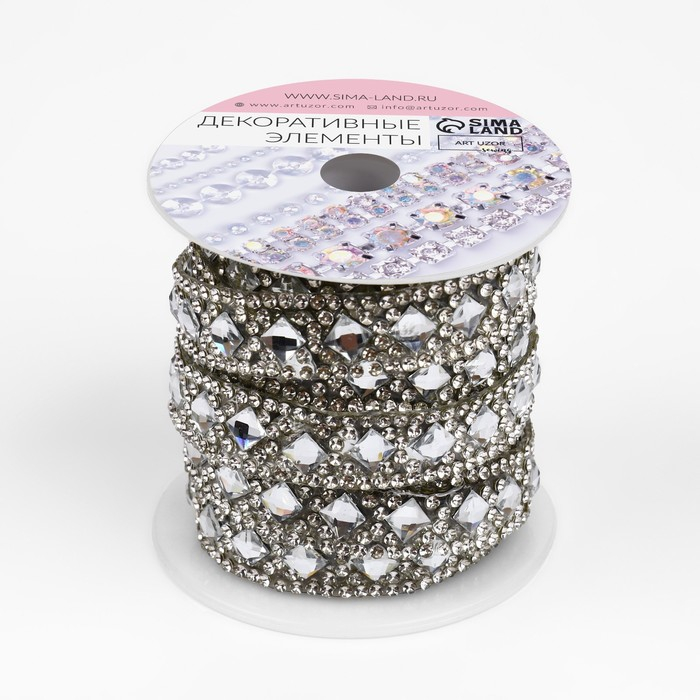 Стразы термоклеевые «Ромбы», ширина - 7 мм, 4,5 ± 0,5 м, цвет серебряный