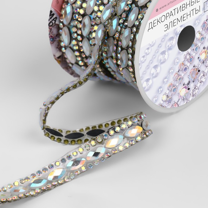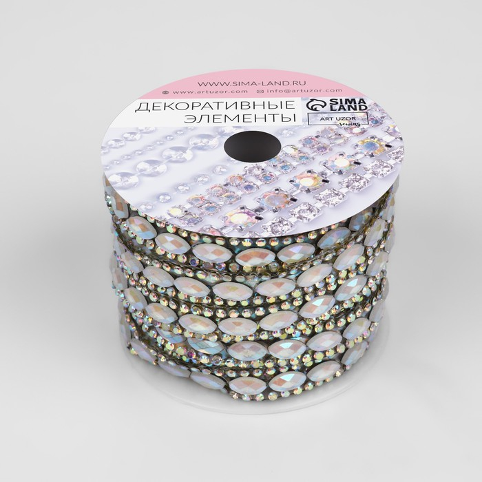 Стразы термоклеевые «Овалы», ширина - 9 мм, 4,5 ± 0,5 м, цвет серебряный