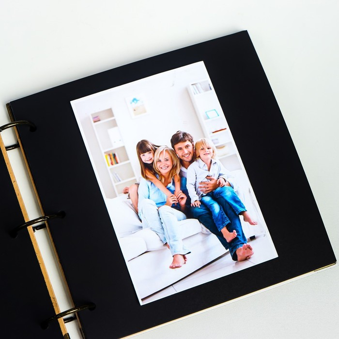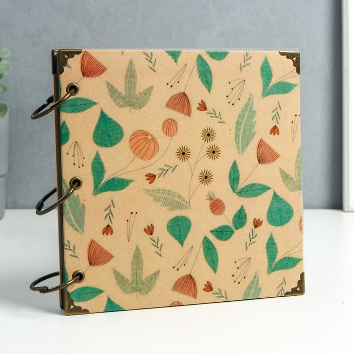 Фотоальбом на кольцах 30 листов "Нарисованные цветы" чёрные листы 18,5х18,5 см