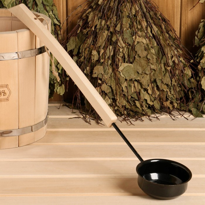 Ковш-черпак 0,2 л, с деревянной ручкой, черный