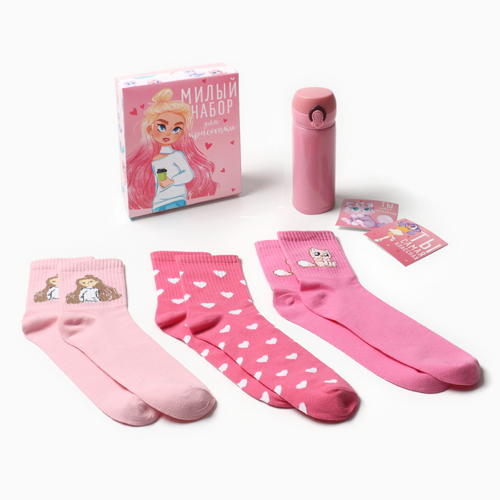 Подарочный набор термос и носки 3 пары KAFTAN "Красотка", р. 36-37 (22-24 см)