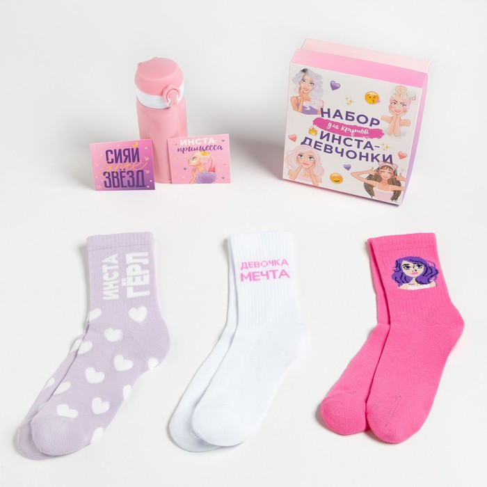 Подарочный набор термос и носки 3 пары KAFTAN "Инста-гёрл", р. 37-39 (23-25 см)