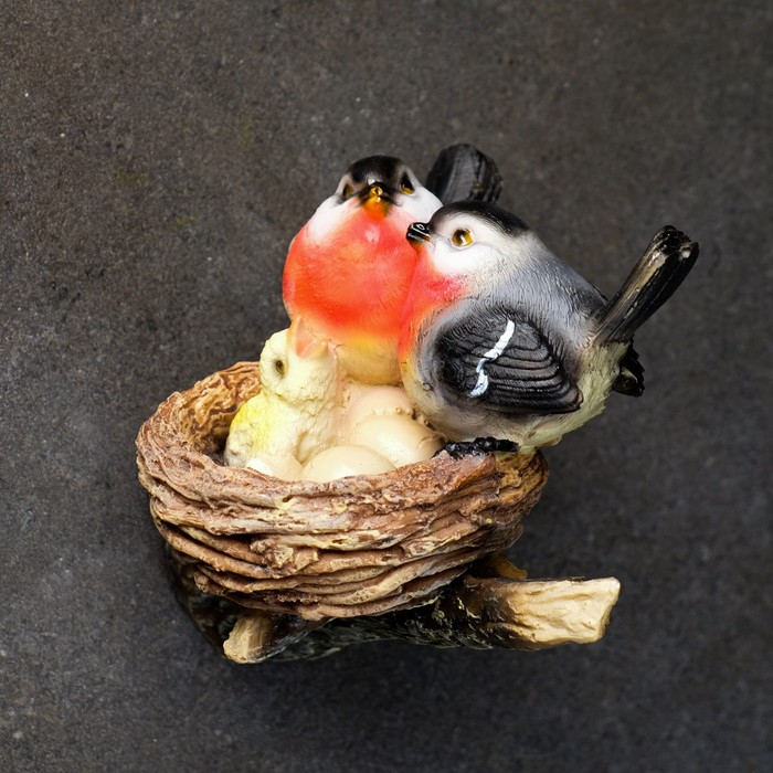 Подвесной декор "Гнездо со снегирями" 18x10,5x14,5см.