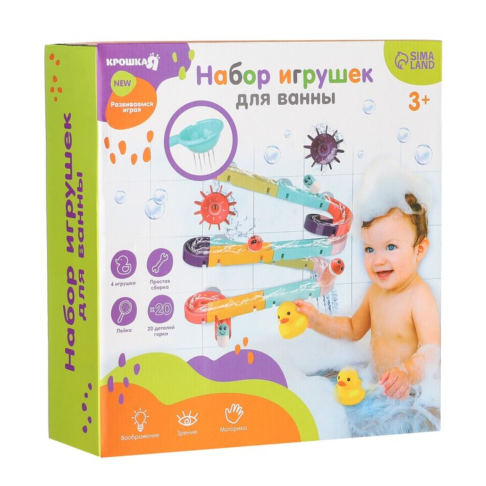 Игрушка для ванны «Водная горка», 22 детали, 8 игрушек, ковш, на присосках, Крошка Я