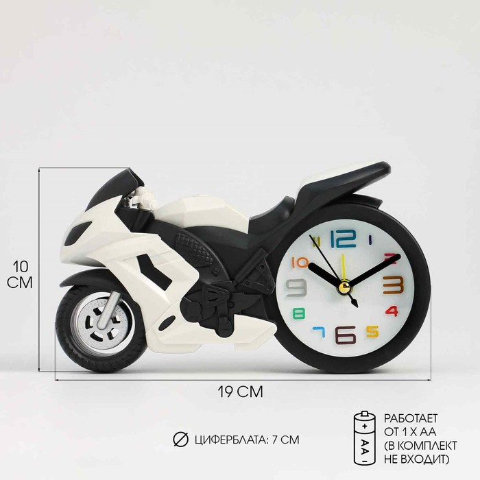 Часы - будильник настольные "Мотоцикл" детские, дискретный ход, d-7 см, 19 х 10 см, АА