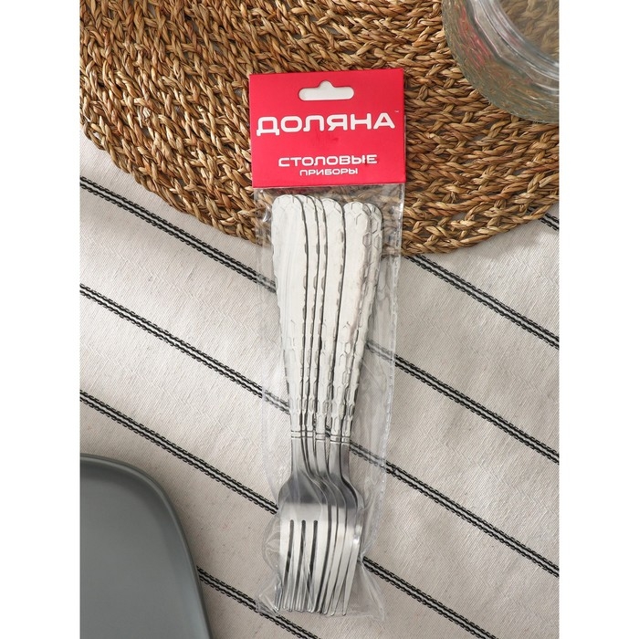 Набор вилок столовых Доляна «Соты», h=20 см, 6 шт, цвет серебряный