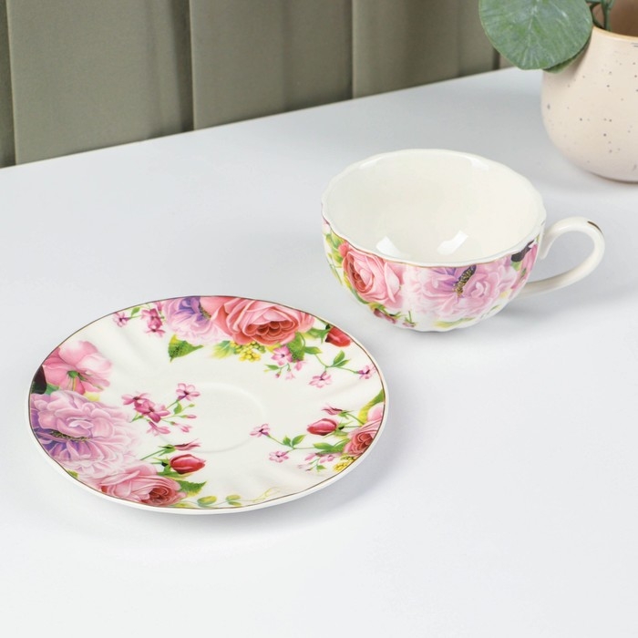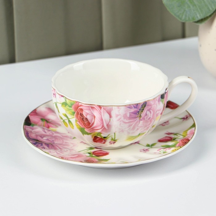 Чайная пара фарфоровая Доляна «Вдохновение», 2 предмета: чашка 250 мл, блюдце d=15,1 см