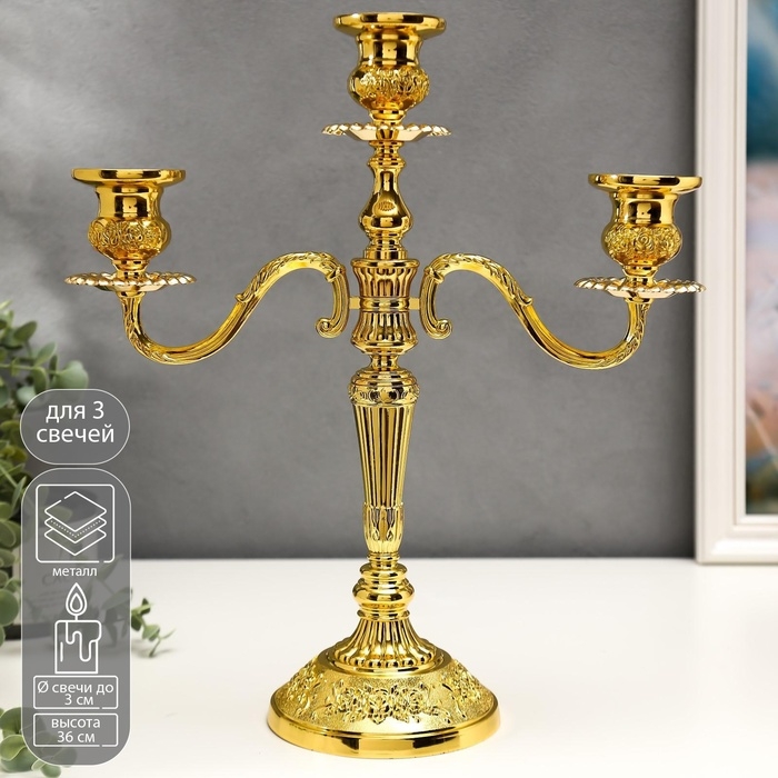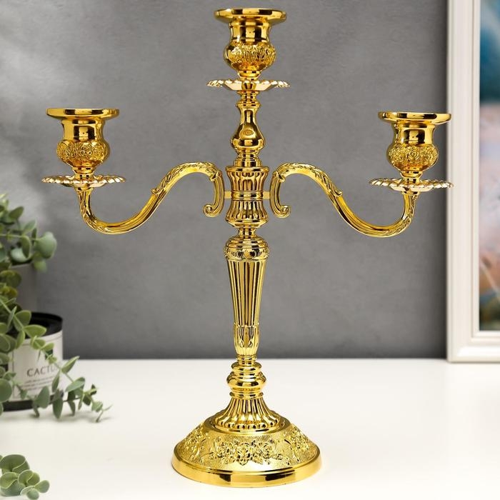 Металлический подсвечник на 3 свечи «Канделябр. Орнамент из роз», 36×31.5×12.5 см
