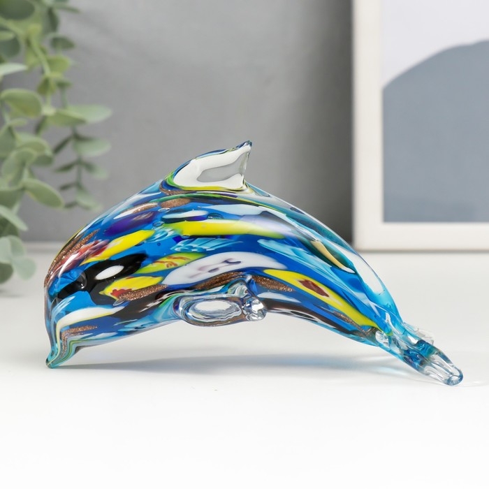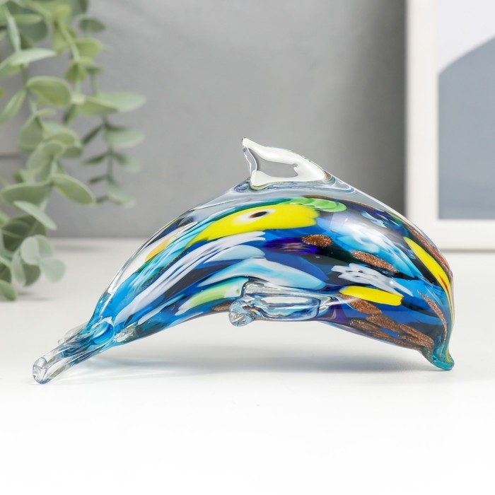 Сувенир стекло "Дельфин многоцветный" под муранское стекло МИКС 8,5х12 см