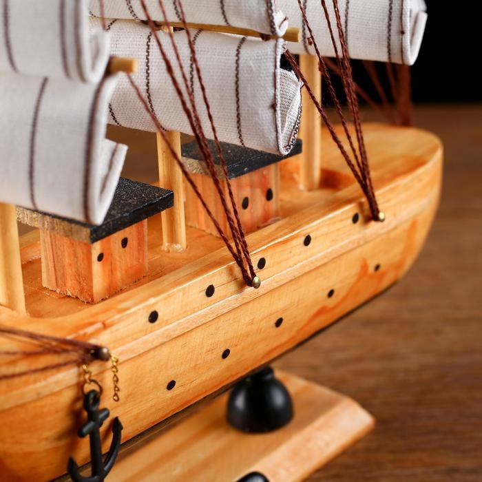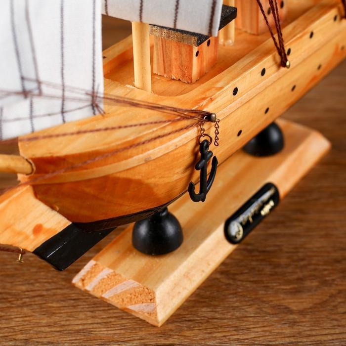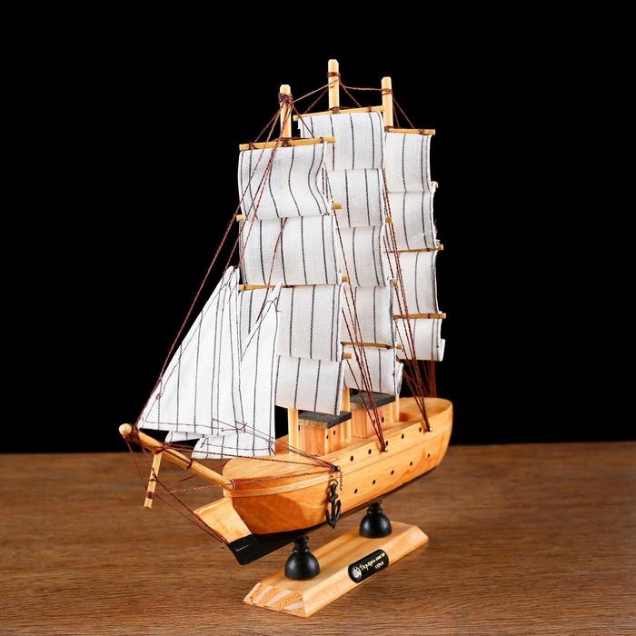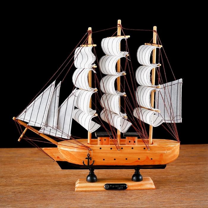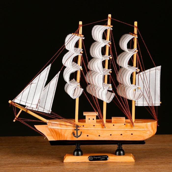 Корабль сувенирный средний «Глиндер», борт светлое дерево, паруса белые, 30х7х30 см