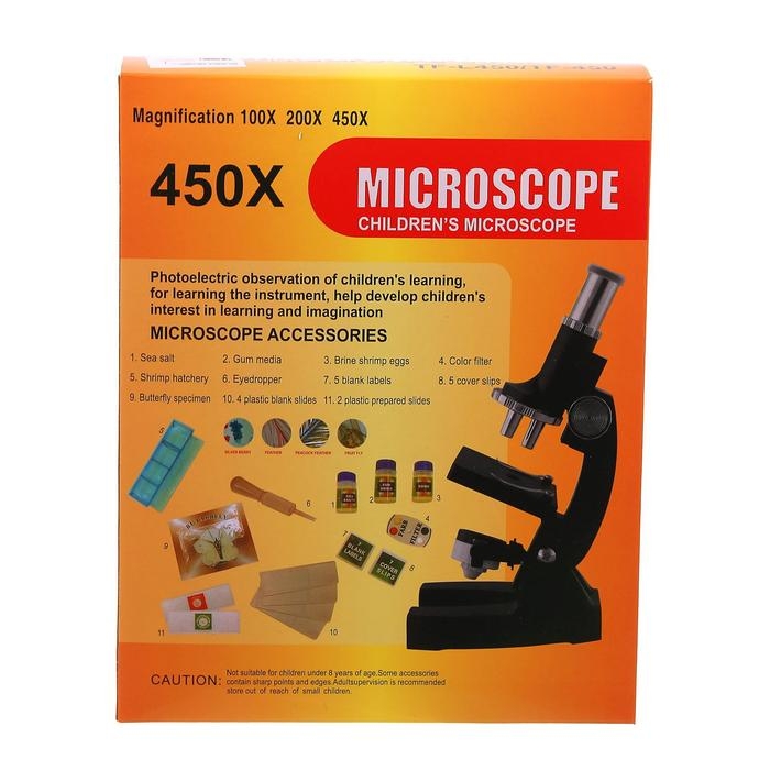 Микроскоп «Юный биолог», увеличение х80, х200, х450, с подсветкой