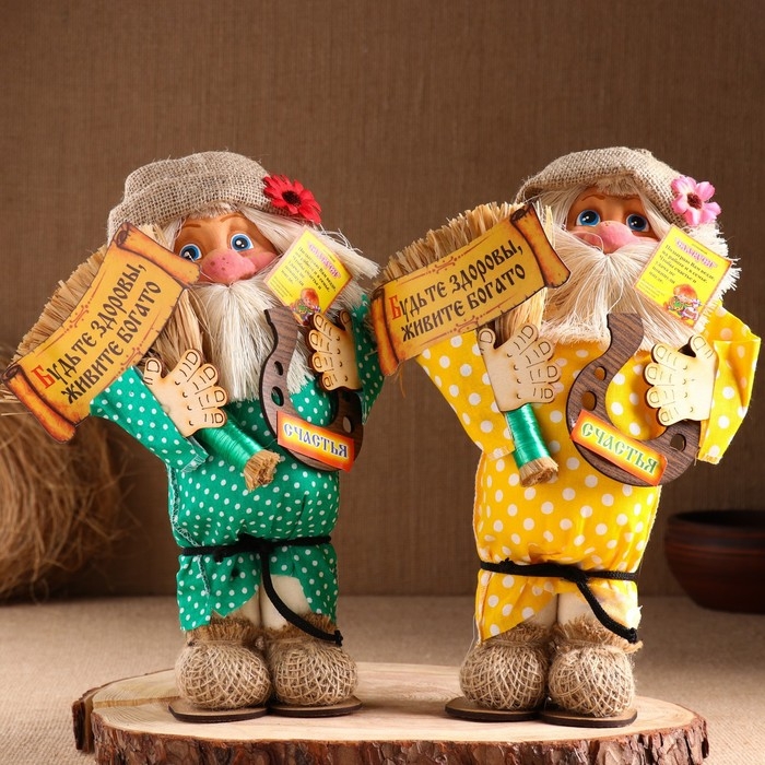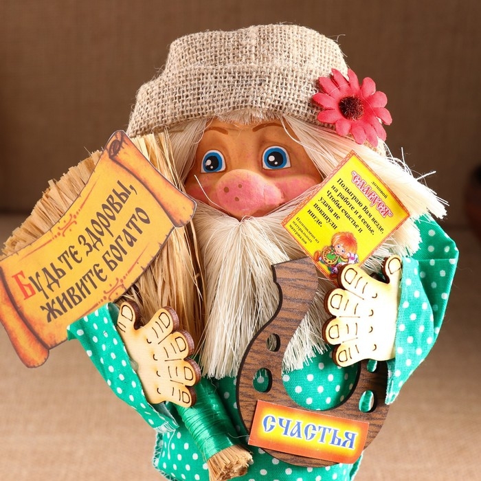 Оберег-домовой "Славуся, с метлой и подковой", средний, 33х24х12 см МИКС