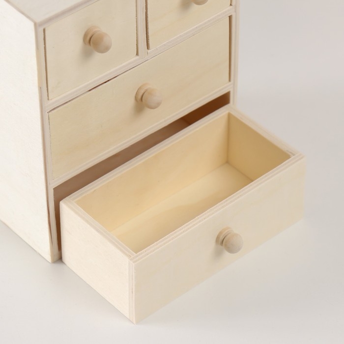 Шкатулка для росписи "Комод" 4 ящика 14х15,5х7,5 см