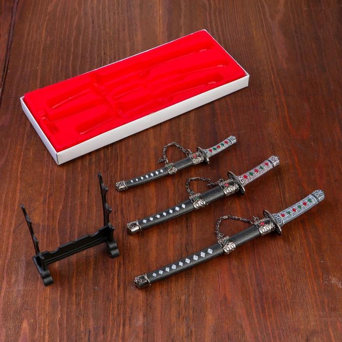 Макет оружия «Сувенирные катаны на подставке 3в1. Алмаз», подарочный набор, ножны чёрный с белыми ромбами, 16 см; 20 см ; 24.5 см