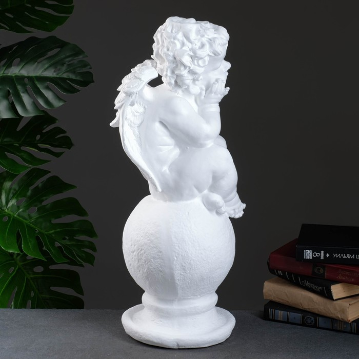 Фигура гипс «Ангел на шаре», большой белый, 26×27×64 см