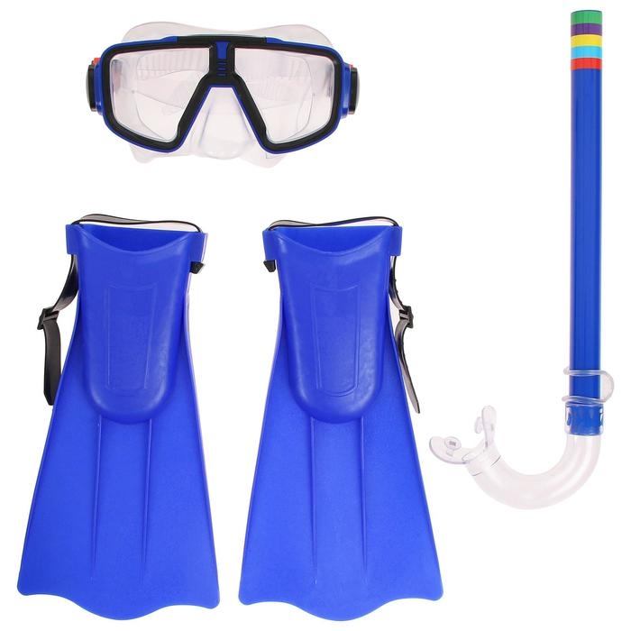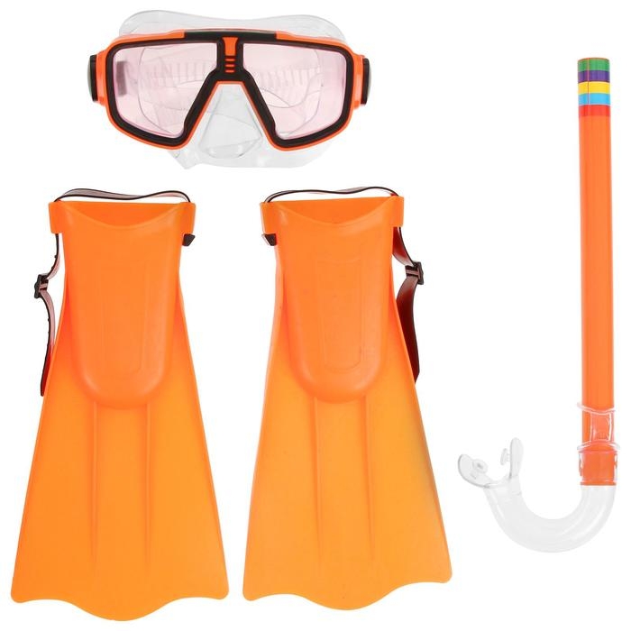 Набор для плавания детский ONLYTOP: маска, трубка, ласты безразмерные, цвета МИКС