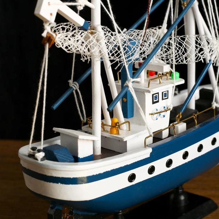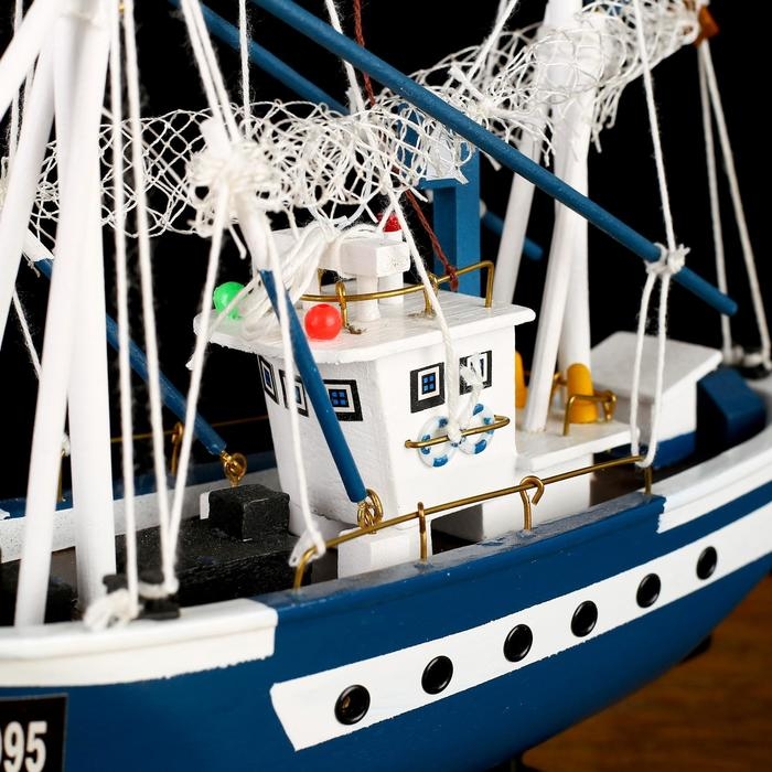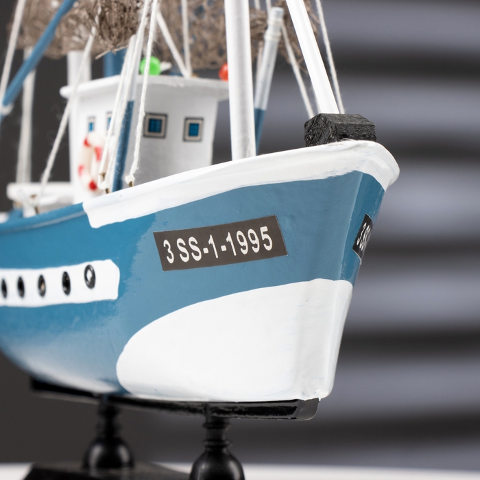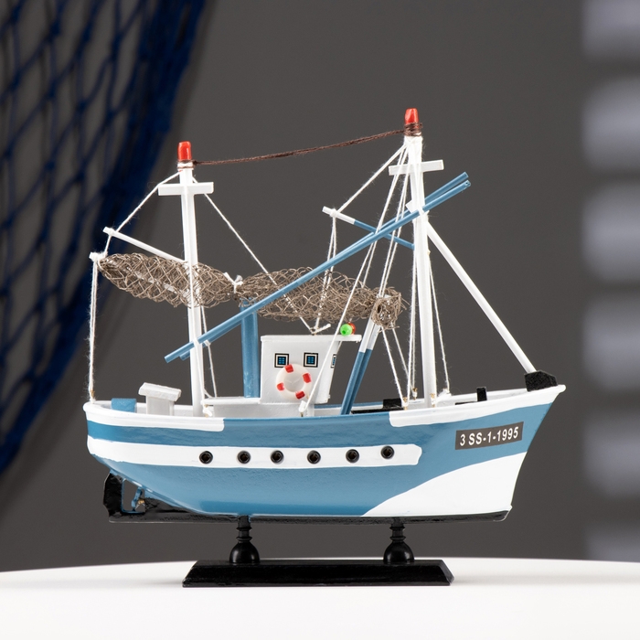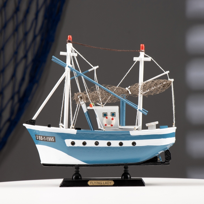 Корабль сувенирный «Ида», малый, голубые борта, сетка