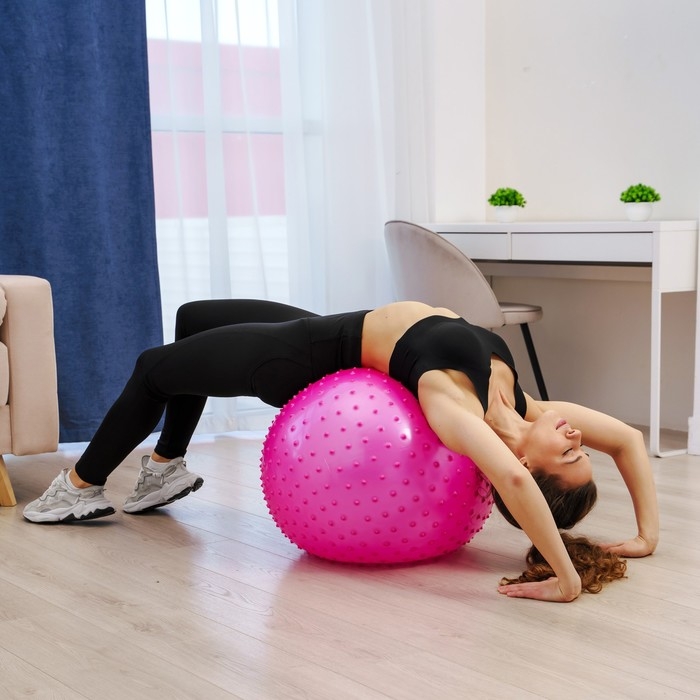 Фитбол ONLYTOP d=65 см, 1000 г, полумассажный, цвета МИКС