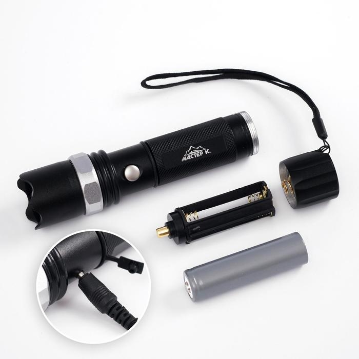 Фонарь ручной аккумуляторный "Мастер К", 1200 мАч, 3 режима, USB, 12 х 3 см